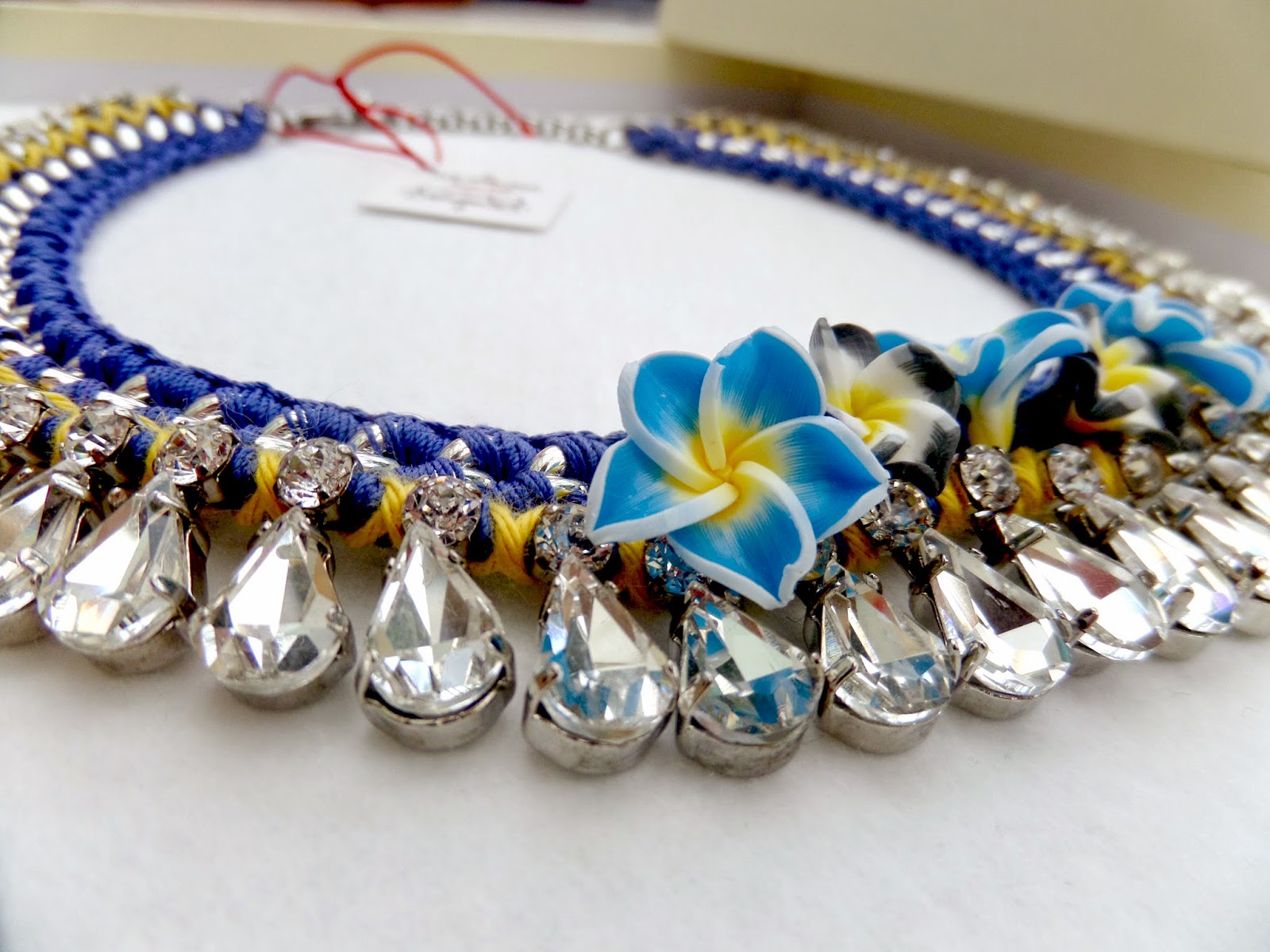 What can I say... this is equally an amazing, bold necklace that isn't for the faint hearted! I love the colours that have been used on this necklace and the little intricate details. I'm not sure if this necklace is being sold yet, but I am guessing that it will be around £80-£120 range, judging by existing necklaces.The only negative thing I will say about this necklace is, personally I think the flowers are a bit too much, but that is just my personal opinion. Other than that, I love this necklace and I think it would make any boring outfit look great! It's most certainly sparkly, I don't think you can argue with me there haha!