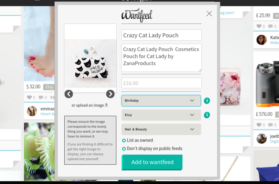 App: https://itunes.apple.com/gb/app/wantfeed/id968027040?mt=8