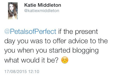 Not to worry about what other people think! I was always keeping my blog a secret from people that I knew in real life, until one day (I think it was in December last year) I decided I was really passionate about blogging and I wanted to share it with everyone! As soon as I did that, I gained more and more support from people I knew in real life as well as online! It's definitely helped me gain more confidence in myself and my writing style... I've also learnt a lot along the way as well as made a lot of new friends :)