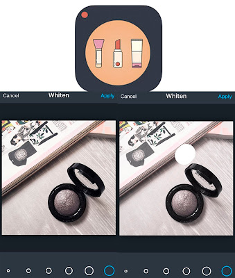Firstly, I open up InstaVogue and I use the whitening tool to make the photo more of a white balance rather than a yellowy undertone. I choose the biggest brush and swipe my finger over the image to change the white balance.