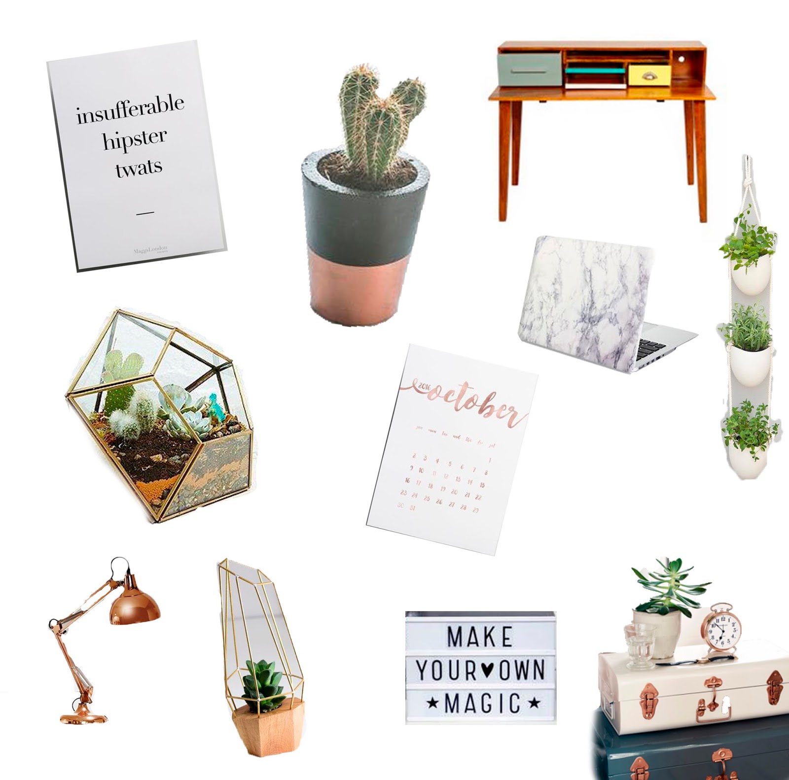 So I have created a mood board below of the last few things I want to add and this will also hopefully inspire some of you to revamp your furniture and create your own ideal work places!
