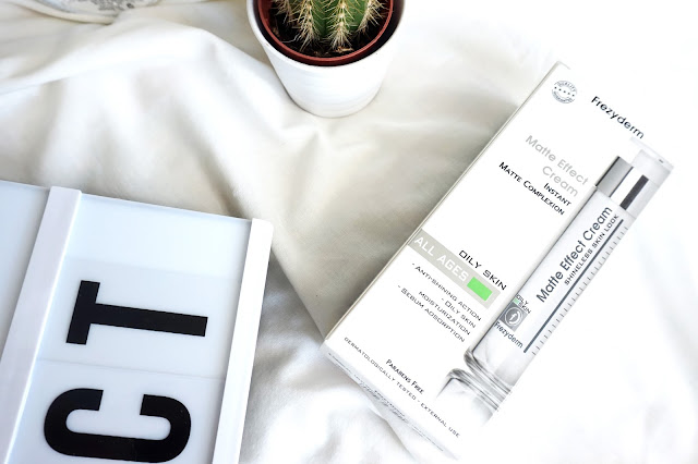However, a company called FrezyDerm* contacted me asking if I would like to try their products. They were kind enough to send me over their Hydration Matte Effect Cream which I was very eager to try, as I had never found a moisturiser that gives me hydration but keeps my skin matte at the same time! As soon as I opened the packaging, the bottle caught my eye! It's definitely a unique looking moisturiser and it looks like a professional product, trusted by dermatologists (which it actually is)! There's a myth that if you have oily skin, you shouldn't moisturise because it will make it more oily. That is certainly NOT true. You need to moisturise regardless of your skin type, which is why this moisturiser is perfect!